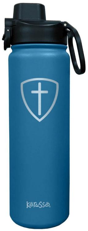“Show the source of your strength with every sip from this Cross Shield Stainless-Steel Bottle by Kerusso in Blue. The cross is meaningful and carries weight with just a glance. This inspirational sweat-free bottle keeps drinks hot or cold for hours, and it s a durable, leak-free vessel for home, work, the gym, or the car.