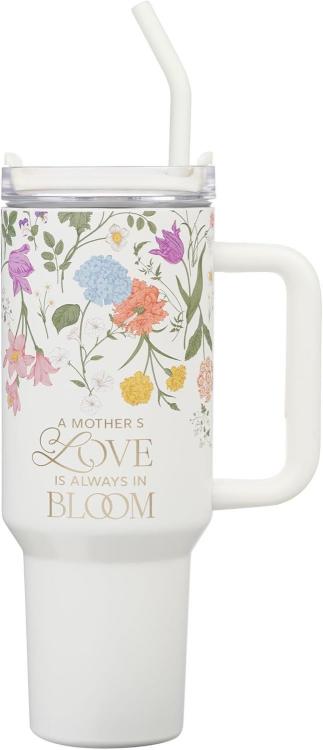 The Grace White Wildflower 40 oz Stainless Steel Tumbler with Straw pairs beautifully with items from the Grace Taupe Wildflower For Mom Collection, like a spiral notebook, scented candle, gift book, faux leather bookmark, Box of Blessings , prompted journal, large notebook set, classic faux leather journal, fashion Bible cover, large gift bag, stainless steel tumbler, and a canvas tote bag. This curated line takes the guesswork out of gifting and helps you create a heartfelt bundle that whispers God’s promises to weary hearts.