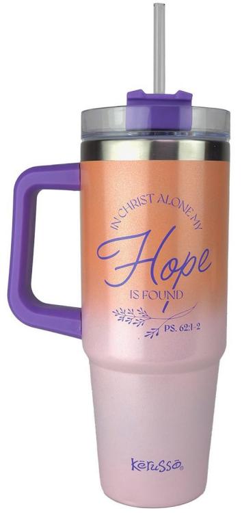 “Seek hope in Christ alone with this pretty ombre Hope 30 oz. Stainless-Steel Mug with Straw by Kerusso in holographic Pink with a convenient swivel lid closure. You ll stay hydrated at work, school, or in the great outdoors with this practical thermal tumbler. We can confidently place our hope in God s promises, knowing He loves us dearly, and has a plan for our lives even into eternity.Upgrade your drinkware with our popular 30 oz. kitchen-grade stainless-steel mug. These generously sized mugs keep your drinks refreshingly cold or perfectly hot for hours, offering all-day hydration with style and endurance. They fit most car cup holders, and the comfortable handle makes this one perfect for hydration to go.