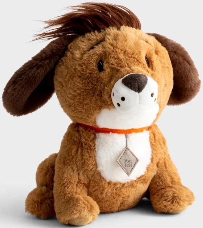 Share faith with little ones with this cuddly Puppy Plush! Measuring 9″ x 10 1/2″, this huggable plush is perfect for bedtime and playtime. Featuring the inspirational Scripture verse from Matthew 11:28 “Come to me all who are heavy burdened and I will give you rest,” this plush provides a comforting reminder of God’s love. A thoughtful gift for birthdays, baby showers, baby dedications, and more!