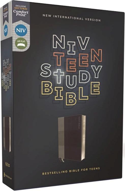 The bestselling NIV Teen Study Bible helps teens apply God’s Word to the issues they face every day!Full of study features that will help today’s teen learn more about God, the Bible, and how God’s Word relates to their lives, the NIV Teen Study Bible will help them keep in step with all God has done, is doing, and will do in the world. This NIV Bible for teens will help them discover the eternal truths of God’s Word and apply them to the issues they face every day, including offering biblical advice about dealing with everything from friends, family, and school to problems such as bullying and depression. As teens navigate their hectic and sometimes stressful lives, this study Bible will help them to deepen and understand their faith while reassuring them that God is always with them and they are never alone.With over 3.5 million copies sold, the NIV Teen Study Bible continues to be a teen’s top resource for discovering the foundational truths of the Bible. Now available in Zondervan’s exclusive NIV Comfort Print typeface for smooth reading, the NIV Teen Study Bible is as easy to read as it is to understand. Expertly designed specifically to be used for the New International Version (NIV) text, Comfort Print offers an easier reading experience that complements the most widely read modern-English Bible translation.Features:Complete text of the accurate, readable, and clear New International Version (NIV)”We Believe” features unpack the Apostles’ Creed to reveal the biblical foundation of faith”Panorama” features keep the big picture of each book of the Bible in viewTopical indexes help with in-depth Bible studyBook introductions provide an overview for each book of the BibleImportant Bible verses to memorizeQ and A’s test your Bible knowledgeProfiles of people in the BibleA presentation page and information about the Apostles’ Creed8-page full-color map sectionBiblical advice about friends, family, school, and other issuesSilver stained page edgesTwo satin ribbon markersLeathersoft cover lies flat when openExclusive Zondervan NIV Comfort Print typeface9.5-point print size