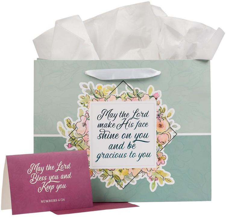 Pair your well-chosen gift with an ancient priestly blessing when you wrap it in the May His Face Shine Upon You Teal Large Landscape Gift Bag with Card Set. This 3-piece gift bag set has everything you need to create a beautiful presentation.