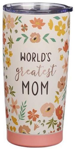 Worlds Greatest Mom Peach Floral Stainless Steel Travel Tumbler